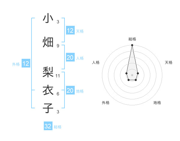 小畑 梨衣子さんの総格は32画の5点!