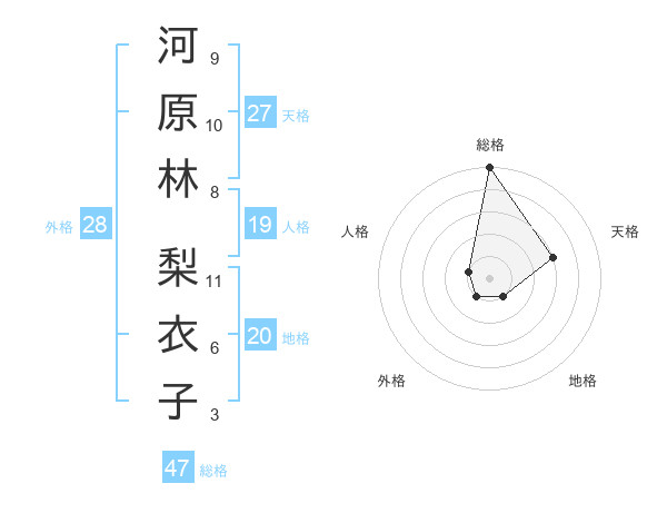 河原林 梨衣子さんを姓名の画数から五運を鑑定