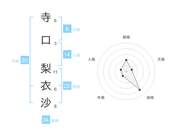 寺口 梨衣沙さんを姓名の画数から五運を鑑定
