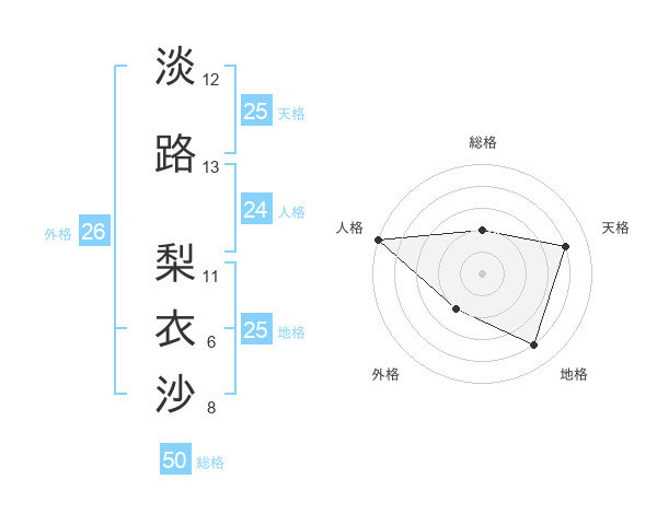 淡路 梨衣沙さんを姓名の画数から五運を鑑定