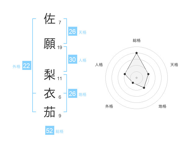 佐願 梨衣茄さんを姓名の画数から五運を鑑定