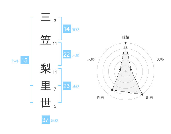 三笠 梨里世さんを姓名の画数から五運を鑑定