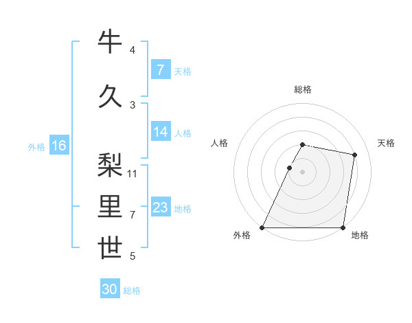 牛久 梨里世さんの総格は30画の2点!