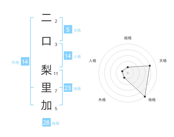 二口 梨里加さんを姓名の画数から五運を鑑定