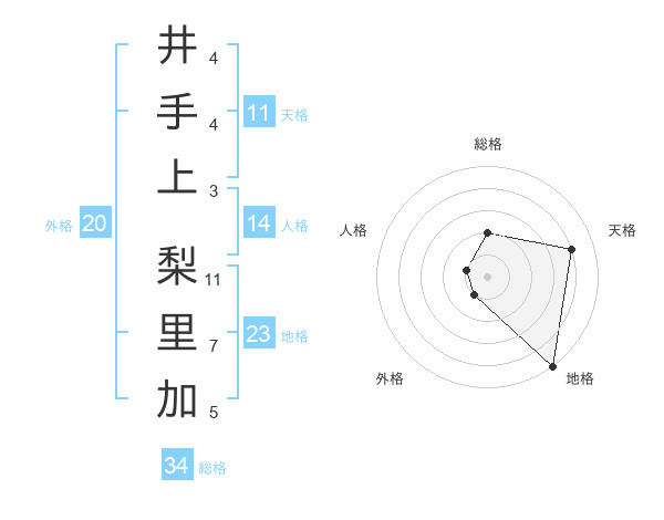井手上 梨里加さんを姓名の画数から五運を鑑定