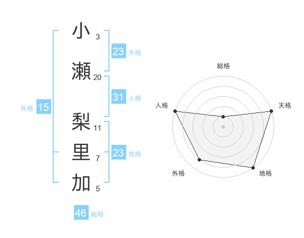 小瀬 梨里加さんを姓名の画数から五運を鑑定