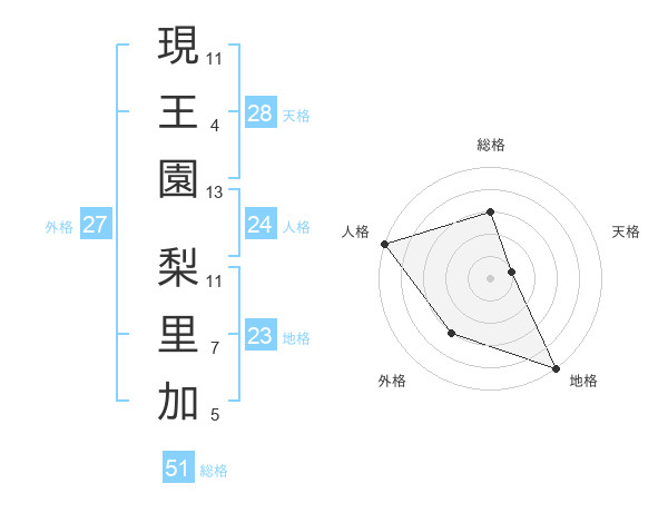現王園 梨里加さんの総格は51画の3点!
