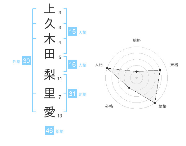 上久木田 梨里愛さんを姓名の画数から五運を鑑定