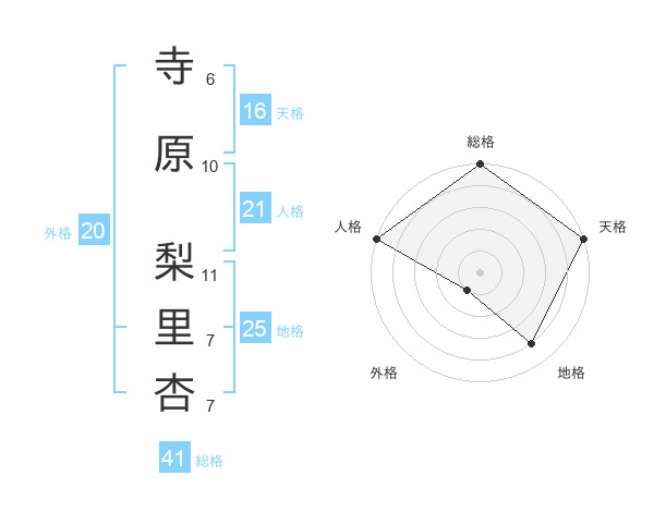 寺原 梨里杏さんの天格は16画の5点!