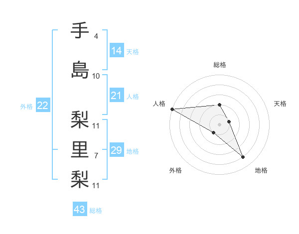 手島 梨里梨さんの総格は43画の2点!