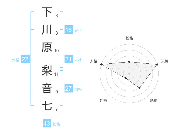 下川原 梨音七さんを姓名の画数から五運を鑑定