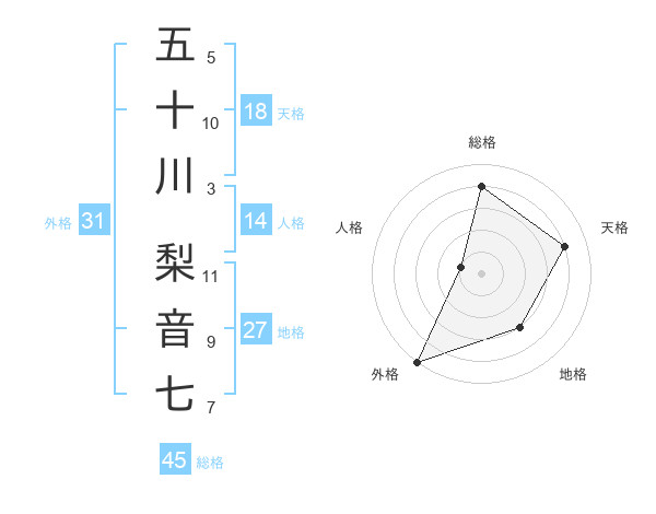 五十川 梨音七さんを姓名の画数から五運を鑑定