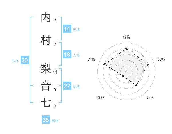 内村 梨音七さんの総格は38画の4点!