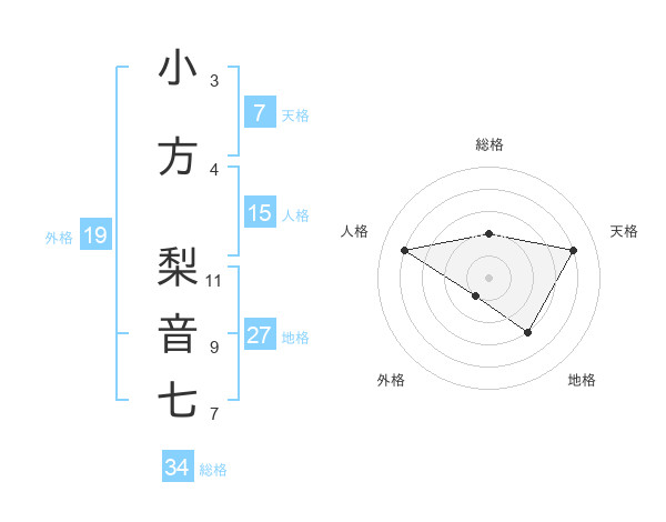 小方 梨音七さんを姓名の画数から五運を鑑定