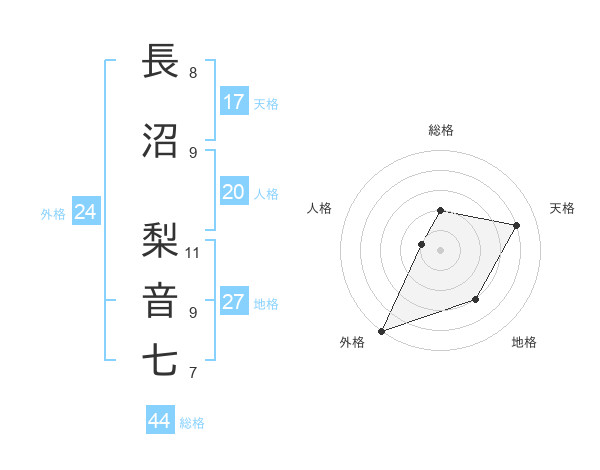 長沼 梨音七さんを姓名の画数から五運を鑑定