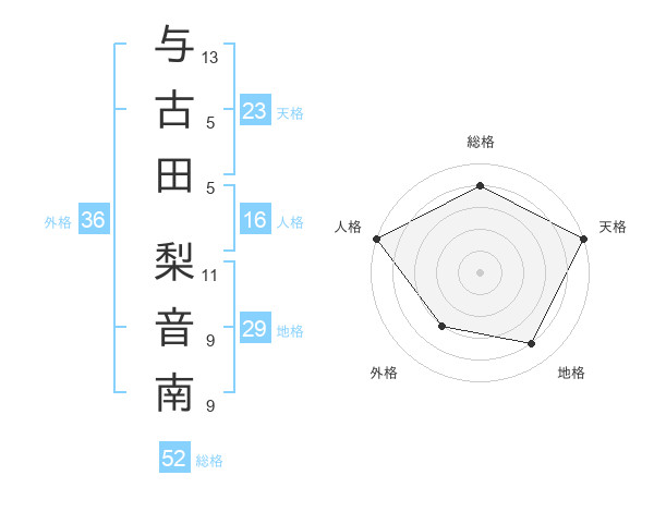 与古田 梨音南さんを姓名の画数から五運を鑑定