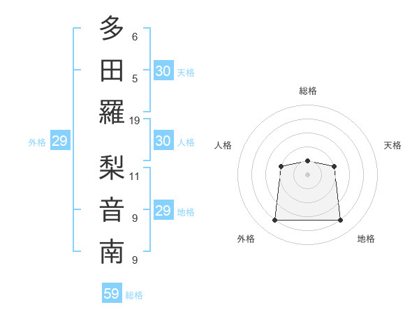 多田羅 梨音南さんの総格は59画の1点!