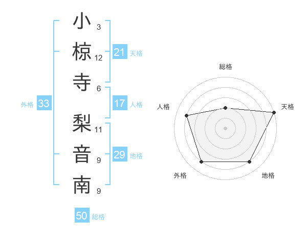 小椋寺 梨音南さんの総格は50画の2点!