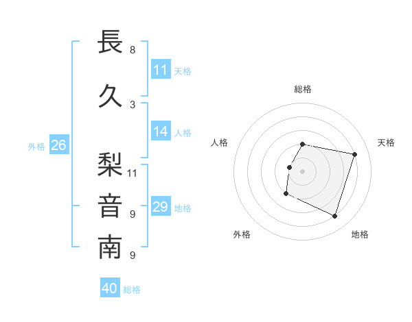 長久 梨音南さんを姓名の画数から五運を鑑定