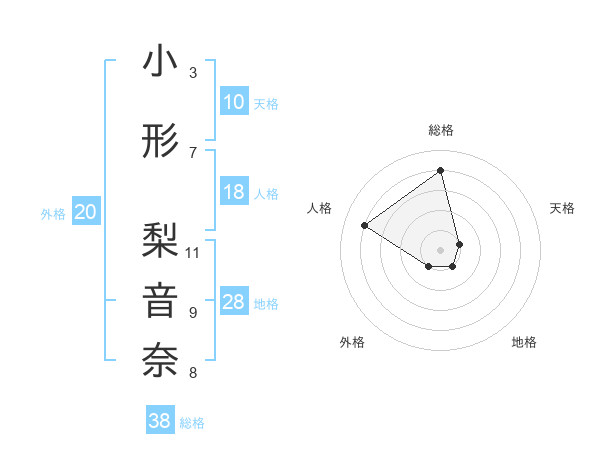 小形 梨音奈さんを姓名の画数から五運を鑑定