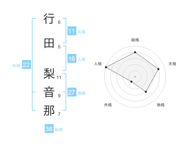 行田 梨音那さんを姓名の画数から五運を鑑定