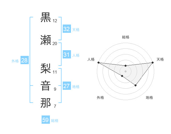 黒瀬 梨音那さんを姓名の画数から五運を鑑定