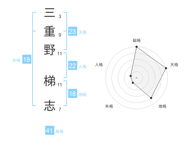 三重野 梯志さんを姓名の画数から五運を鑑定