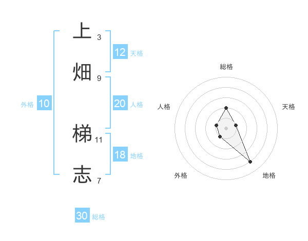 上畑 梯志さんを姓名の画数から五運を鑑定