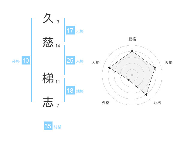 久慈 梯志さんを姓名の画数から五運を鑑定