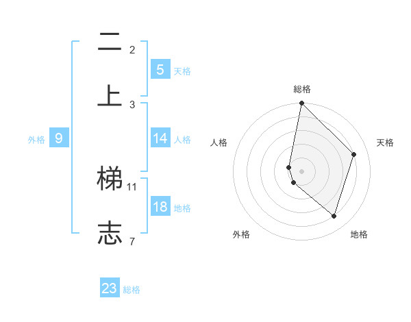 二上 梯志さんの総格は23画の5点!