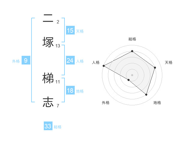 二塚 梯志さんの総格は33画の4点!