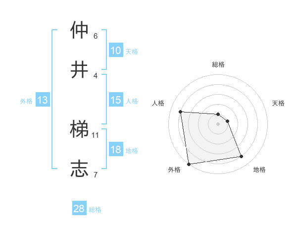 仲井 梯志さんを姓名の画数から五運を鑑定