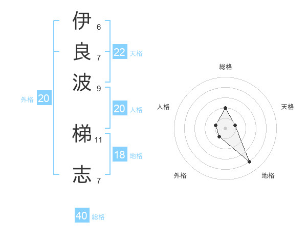伊良波 梯志さんを姓名の画数から五運を鑑定