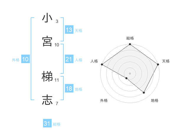 小宮 梯志さんの総格は31画の5点!