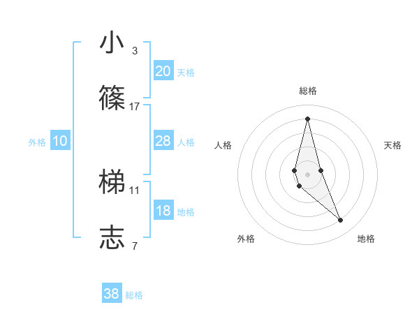 小篠 梯志さんを姓名の画数から五運を鑑定