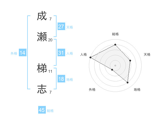 成瀬 梯志さんの総格は45画の4点!