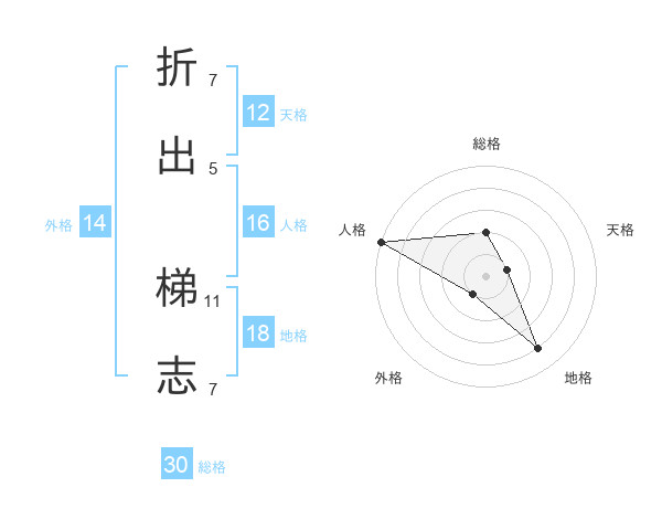 折出 梯志さんの総格は30画の2点!
