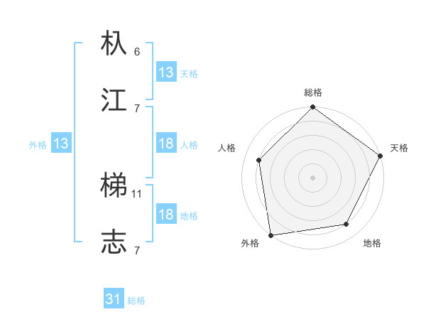 杁江 梯志さんの総格は31画の5点!