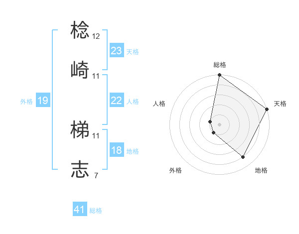 棯崎 梯志さんを姓名の画数から五運を鑑定