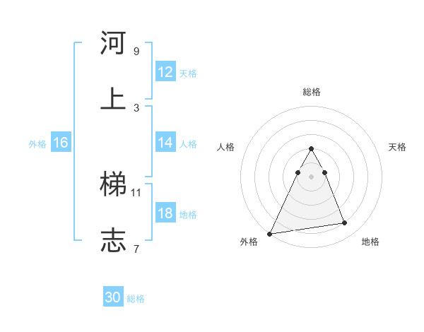 河上 梯志さんの総格は30画の2点!