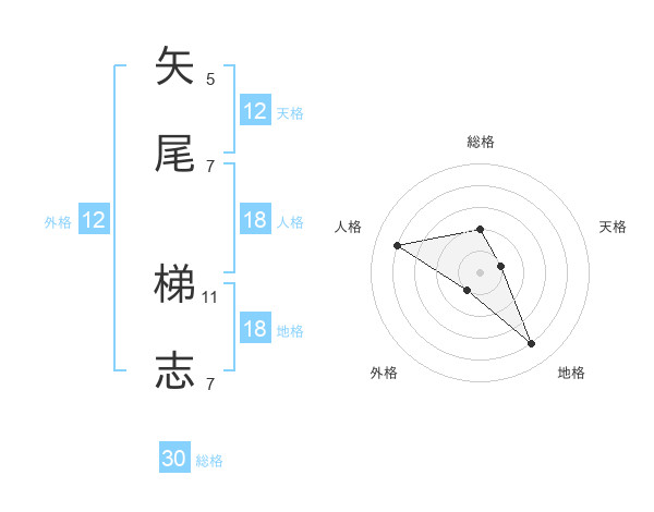 矢尾 梯志さんを姓名の画数から五運を鑑定