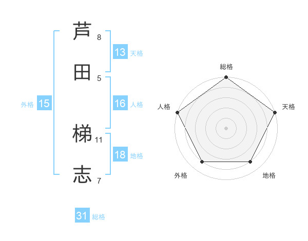芦田 梯志さんを姓名の画数から五運を鑑定