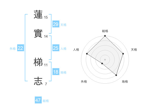 蓮實 梯志さんを姓名の画数から五運を鑑定