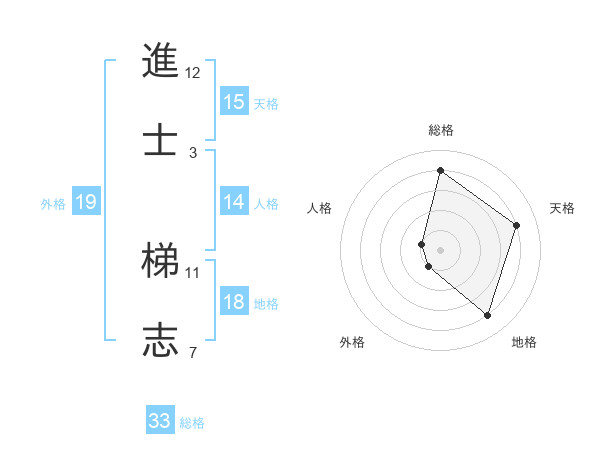 進士 梯志さんの総格は33画の4点!