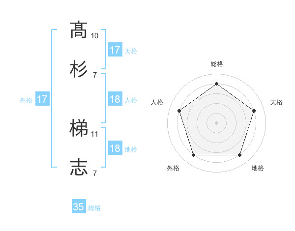 髙杉 梯志さんを姓名の画数から五運を鑑定