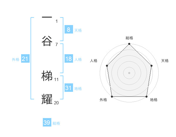 一谷 梯耀さんの総格は39画の5点!