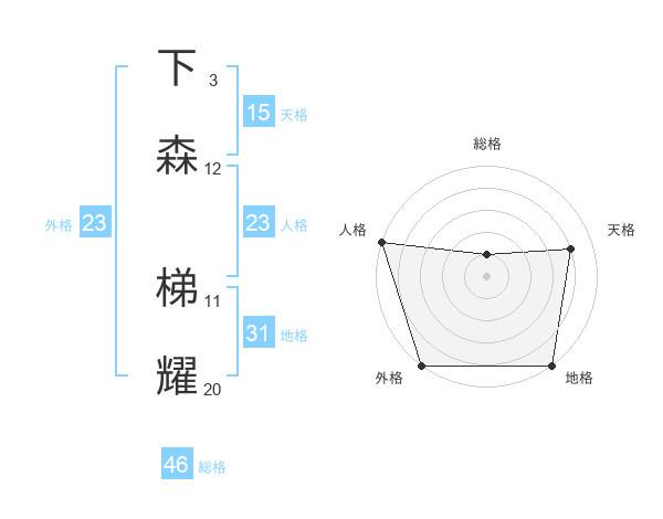 下森 梯耀さんを姓名の画数から五運を鑑定