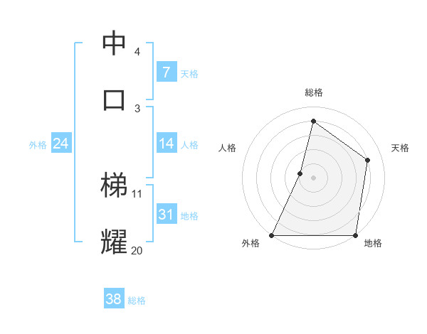 中口 梯耀さんの総格は38画の4点!