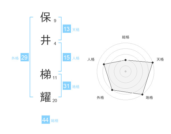 保井 梯耀さんの外格は29画の4点!