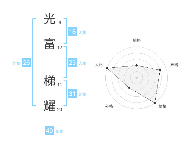 光富 梯耀さんの総格は49画の2点!